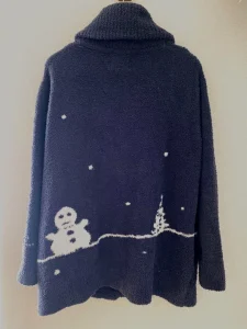 Set in a calm, sophisticated navy tone, this cardigan features Snoopy beautifully rendered in panel jacquard knitting, adding a playful touch without feeling childish.