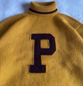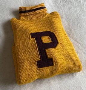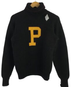 This “P” logo sweater belongs to Polo Ralph Lauren and strongly reflects its collegiate, sporty heritage.