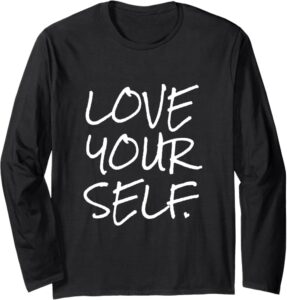 Large red “LOVE YOURSELF” logo printed on the left sleeve