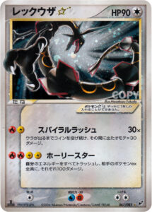 Due to its immense popularity, it is traded at high prices worldwide just like Rayquaza ☆ (107/107) from the English expansion EX Deoxys, released around the same time.