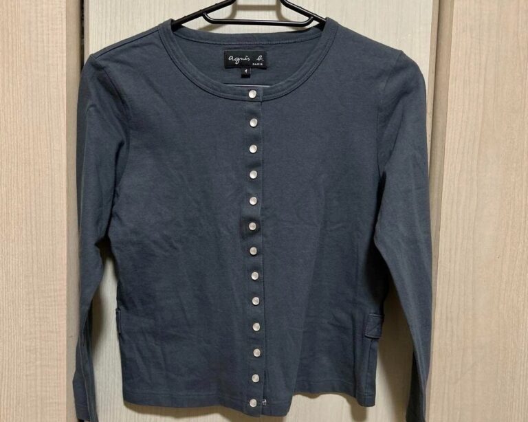 French-made cardigans feature a small “agnès b. Paris” tag sewn near the hem —